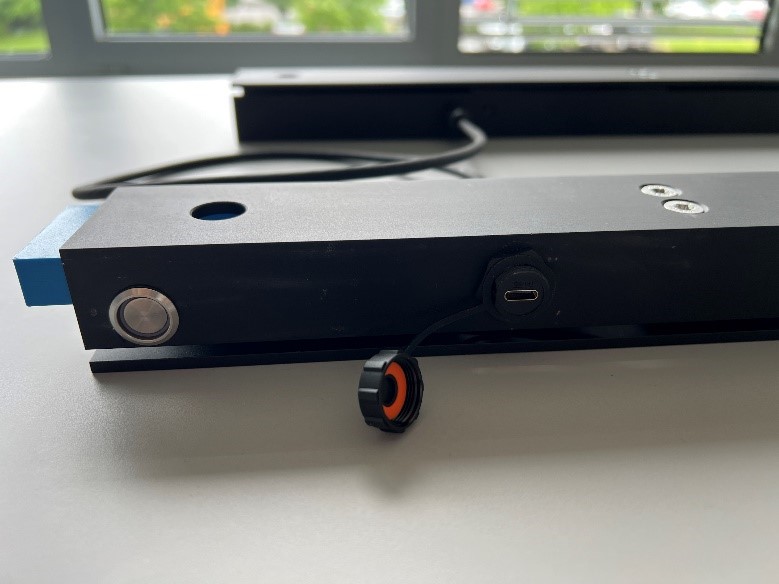 Antes de colocar la báscula bajo la colmena, haga una prueba para familiarizarse con su funcionamiento. Coloque la báscula sobre una mesa y enciéndala con el interruptor situado en la propia unidad. En el interruptor se encenderá brevemente una luz azul: es la señal de que la báscula está operativa.