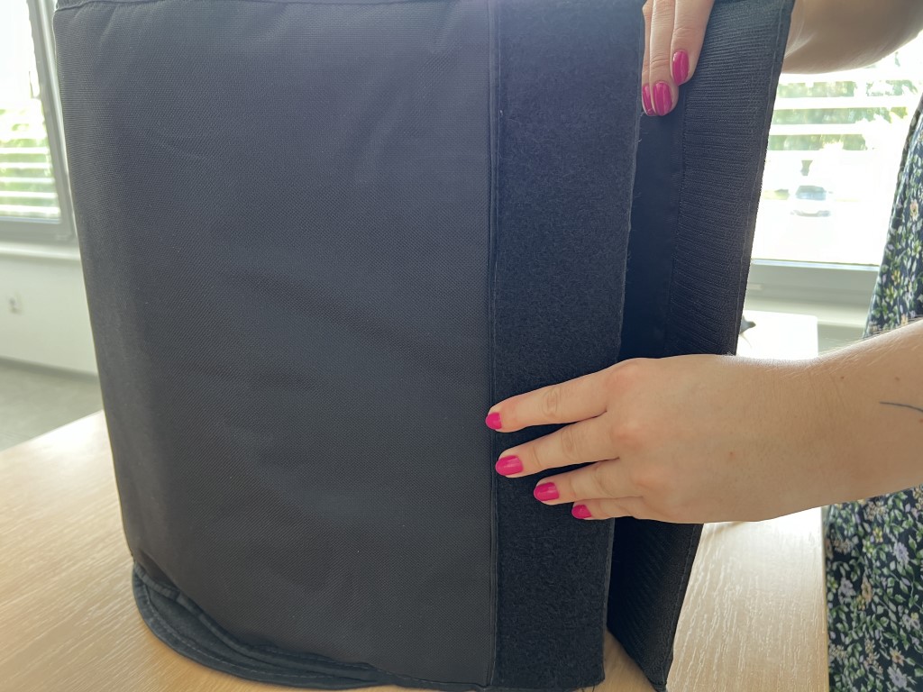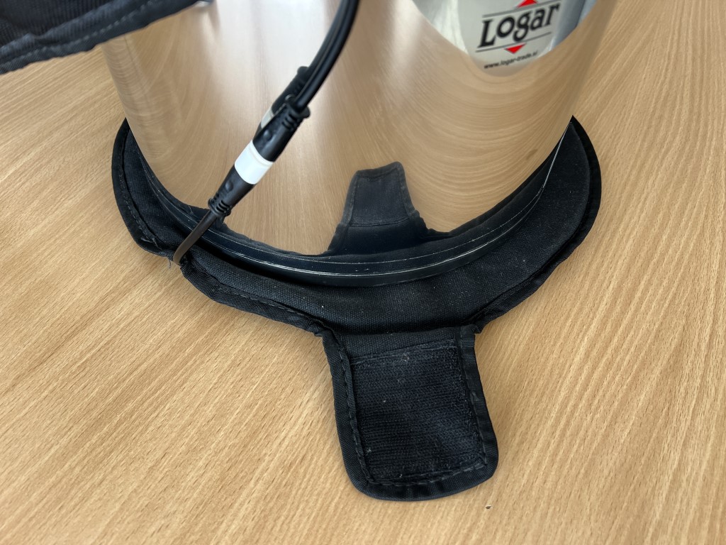 Envuelva la manta calefactora firmemente alrededor del recipiente y fíjela con la cinta de velcro.