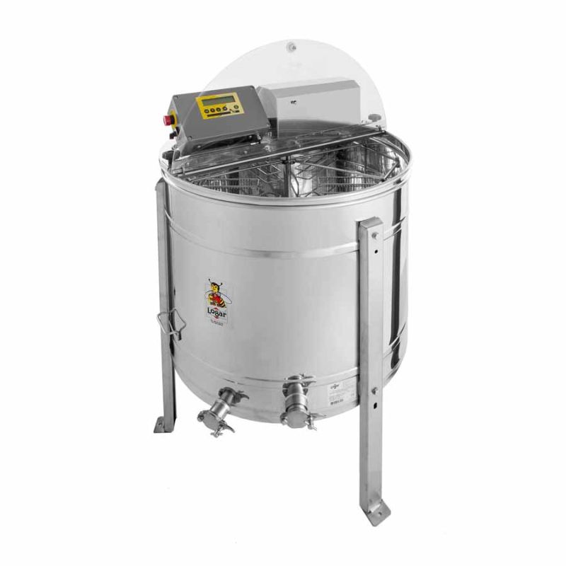 La centrífuga autoinvertible Logar se distingue por su alta calidad de fabricación y tecnología moderna, que hacen que el centrifugado sea eficiente, suave y seguro. Ideal para apicultores que valoran la fiabilidad y una automatización cómoda.