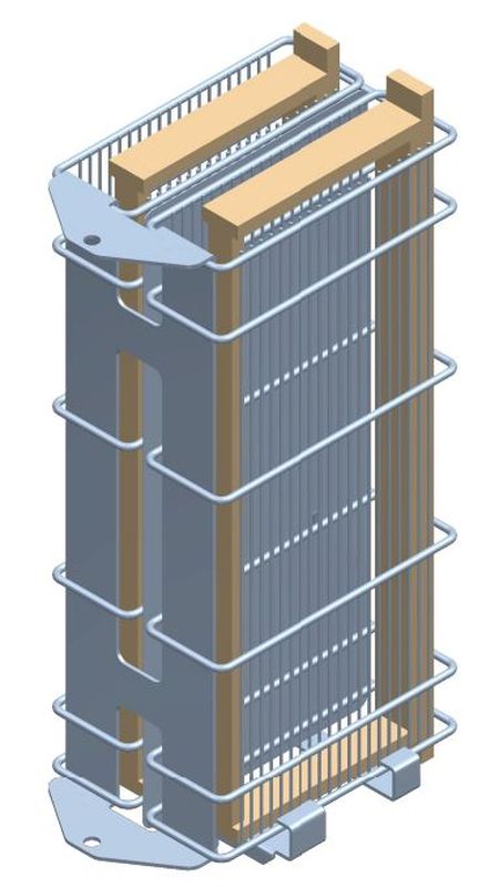 Los compartimentos para los cuadros están formados por barras de rejilla verticales de densidad adecuada para que los cuadros no sufran daños durante el centrifugado. Un mecanismo especial que las une evita la acumulación de miel, de modo que los cuadros quedan secos tras el centrifugado.