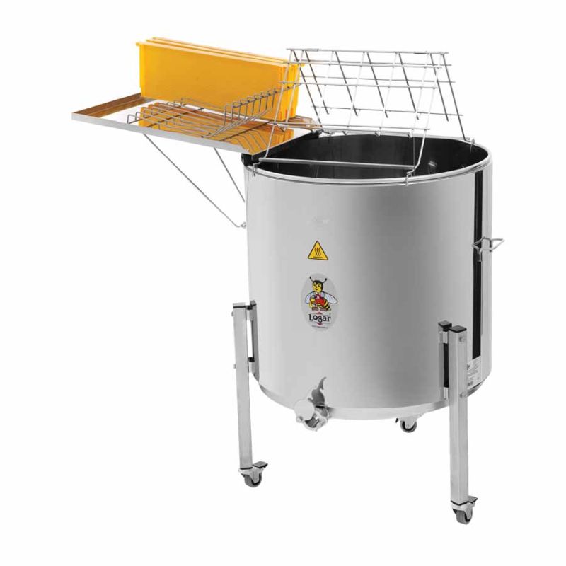 El derretidor para cera de desoperculado permite una separación sencilla del honey (miel) respecto a la cera de opérculo gracias a la circulación de aire caliente. Este sistema es especialmente adecuado para los apicultores que descoperculan los panales con máquinas o con cuchillos eléctricos, ya que con esos métodos queda más miel en la cera de opérculo.