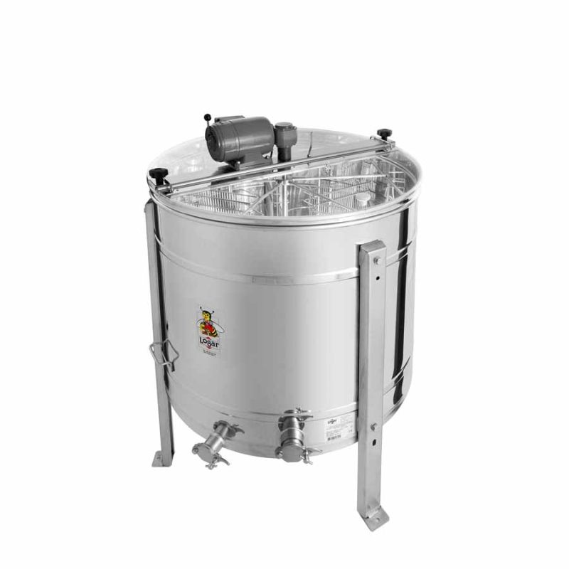 Extractor de miel autoinvertible para 6 marcos, con motor 110 W / 230 V y interruptor de seguridad que apaga automáticamente el motor al abrir la tapa. Mediante la palanca de regulación puede ajustarse la velocidad deseada entre 0 y 280 revoluciones por minuto (rpm), así como el sentido de giro (izquierda/derecha). La más moderna tecnología nos ha permitido desarrollar de forma innovadora el fondo de la cuba del extractor. El fondo de la cuba está soldado sin juntas y tiene pendiente hacia la salida. El grifo para miel de acero inoxidable está soldado en el punto más bajo para permitir que toda la miel salga de la cuba. Todas las piezas del extractor que entran en contacto con la miel están fabricadas con materiales aptos para uso alimentario. La tapa es de acrílico transparente.