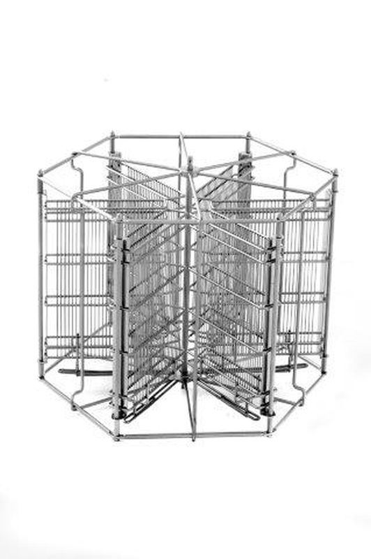Los soportes para cuadros están formados por barras de rejilla verticales con la densidad adecuada para evitar daños en los cuadros durante la centrifugación. Un mecanismo especial conecta los soportes entre sí; de este modo la miel no se acumula en las bandejas y los cuadros quedan secos tras el centrifugado.